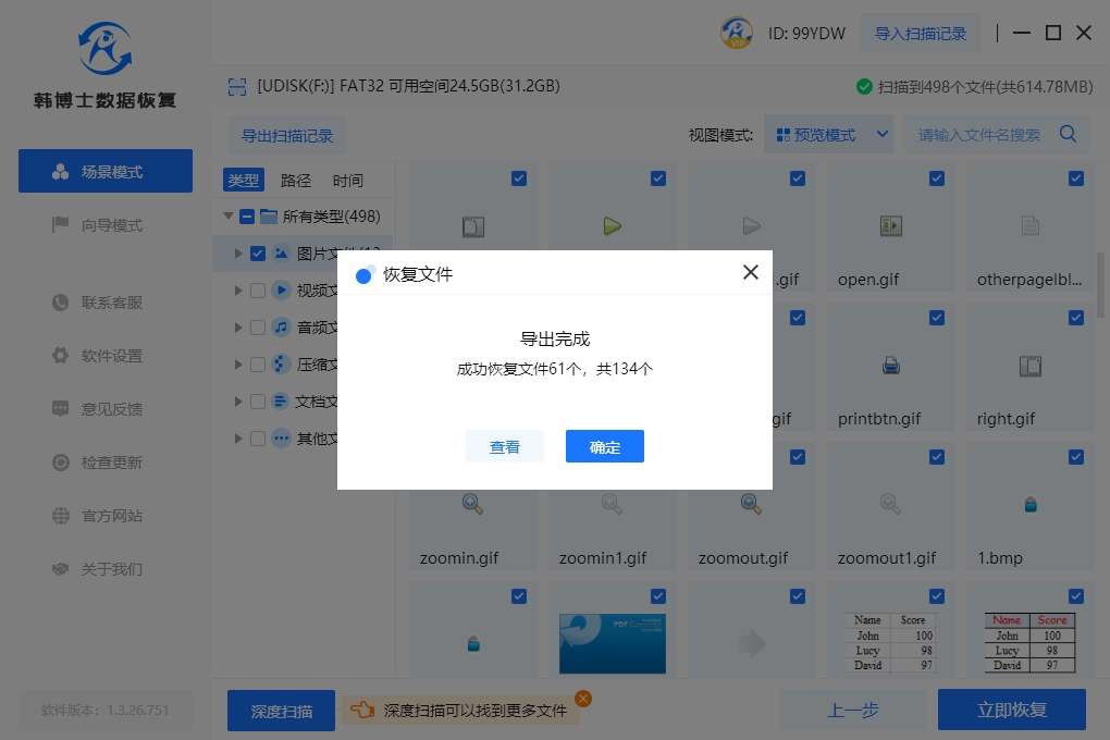 6. 韓博士恢復(fù)完成,點(diǎn)擊“查看”按鈕,即可輕松找到已成功恢復(fù)的U盤數(shù)據(jù),十分方便。