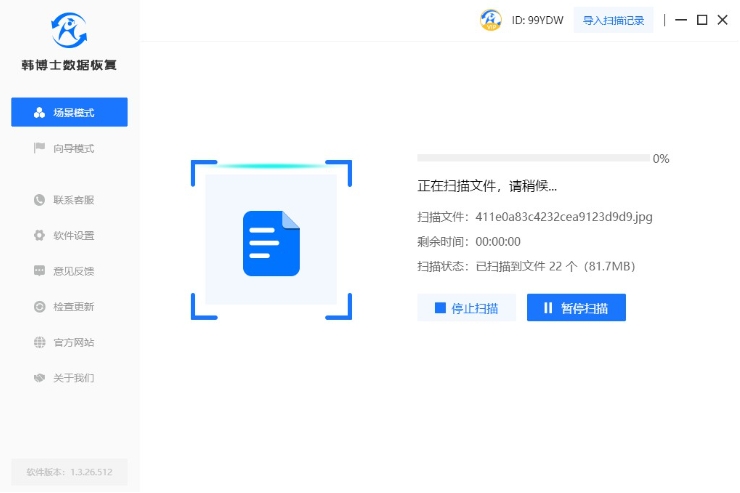3. 系統(tǒng)正在進行文件的識別和掃描,這一步驟是自動進行的,您只需靜靜等待即可,無需進行任何手動干預(yù)。