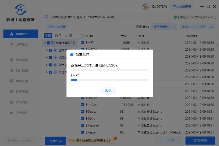5. 不必擔心,在數(shù)據(jù)恢復(fù)和導(dǎo)出階段,韓博士會全程自動完成,用戶無需進行任何手動操作。