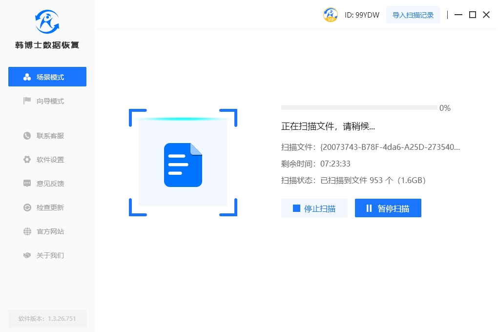 3. 韓博士正在掃描硬盤數(shù)據(jù),您不必動(dòng)手操作,只需耐心等待掃描完畢。等掃描結(jié)束后,挑選您需要恢復(fù)的文件,然后點(diǎn)一下“立即恢復(fù)”,這樣就可以了。