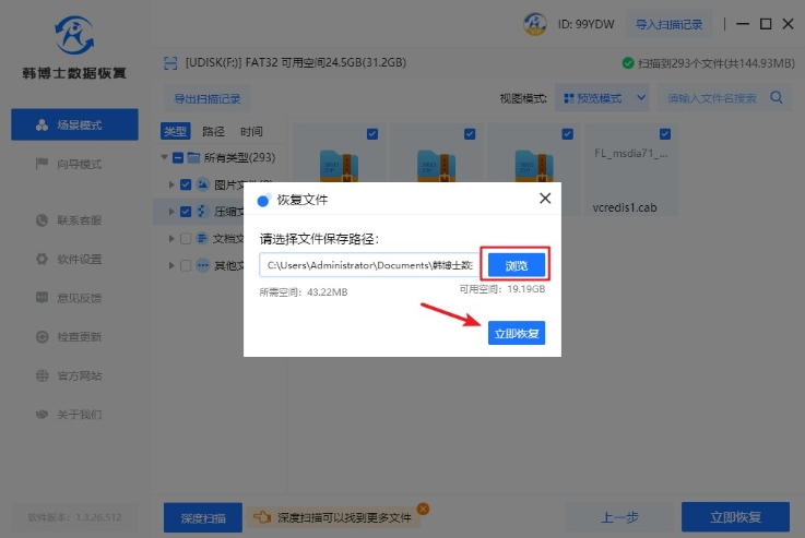 如果U盤只是出現(xiàn)了邏輯損壞,比如文件系統(tǒng)損壞或者分區(qū)丟失,那么我們可以使用數(shù)據(jù)恢復(fù)軟件來進(jìn)行恢復(fù)。就拿韓博士數(shù)據(jù)恢復(fù)來說,它有快速、深度掃描的功能,幫我們找回丟失的文件。但在使用時(shí),大家要注意: