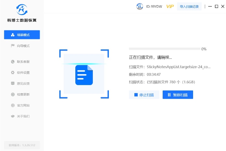 3.文件掃描正在進(jìn)行中,請稍等。掃描完成后,請仔細(xì)查看需要恢復(fù)的文件,然后勾選,再點(diǎn)擊"立即恢復(fù)",開始文件的恢復(fù)。