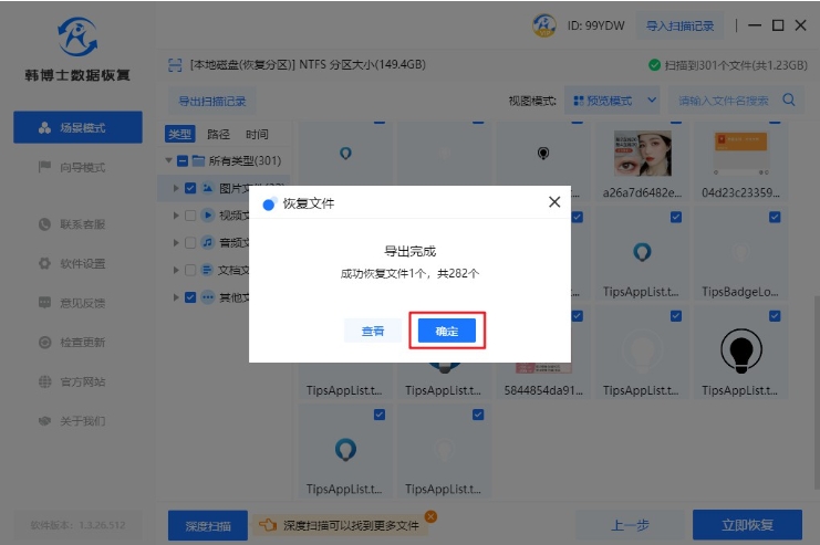 6. 來到了數(shù)據(jù)恢復(fù)的最后階段,點擊“確定”按鈕,這是韓博士成功完成整個恢復(fù)過程的最后一步。
