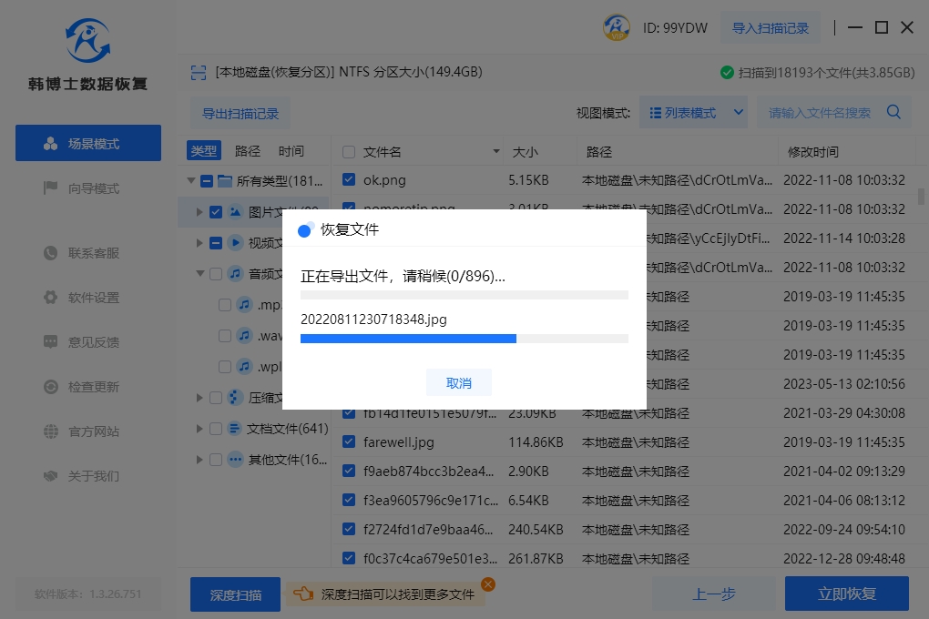 5. 不必?fù)?dān)心,在數(shù)據(jù)恢復(fù)和導(dǎo)出階段,韓博士會全程自動完成,用戶無需進(jìn)行任何手動操作。