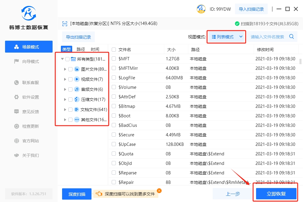 3. 韓博士正在進(jìn)行文件掃描,請(qǐng)保持耐心等待。掃描完成后,勾選要恢復(fù)的文件,然后點(diǎn)擊“立即恢復(fù)”按鈕,即可順利完成數(shù)據(jù)恢復(fù)過程。