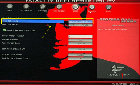 3.使用方向鍵將光標(biāo)移動至以下選項,如圖所示: