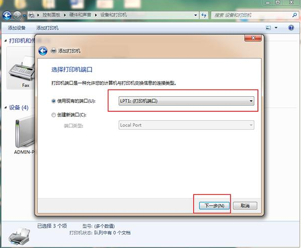 3.開始選擇打印機的端口,最后進入下一步操作。
