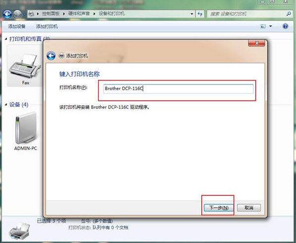 6.開始在界面中輸入打印機的名稱繼續(xù)操作。