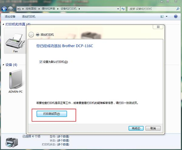 7.電腦會自動進行安裝打印機,最后提示添加完成,大家可以通過打印測試頁進行測試打印機是否正常安裝。