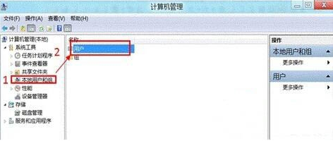 2.在打開的計算機管理界面中點擊“本地用戶和組”,隨后選擇“用戶”進入。