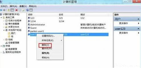 3.右鍵選擇需要刪除的賬戶,最后點擊“刪除”即可。