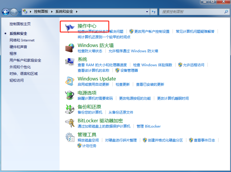 2.電腦會(huì)打開相應(yīng)的界面,大家直接選擇“操作中心”進(jìn)入,如圖所示: