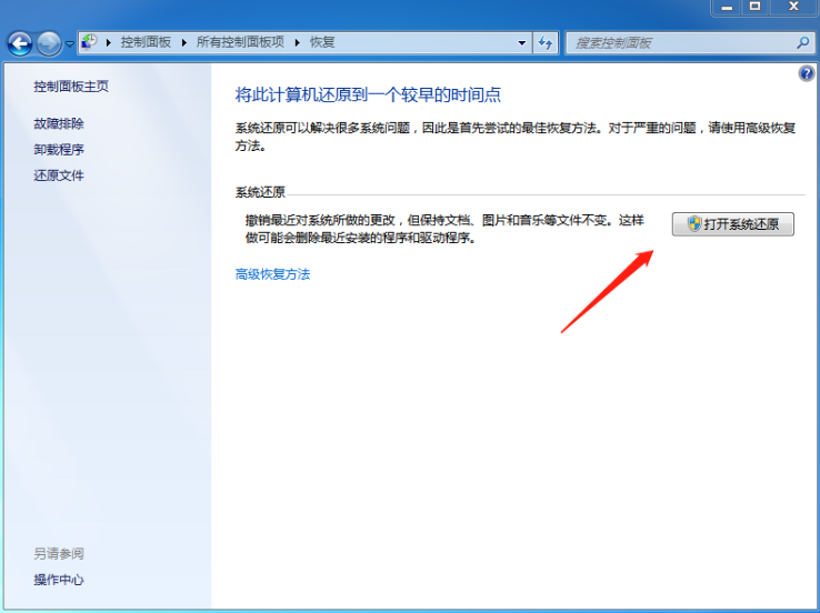 4.繼續(xù)在界面中選擇“打開系統(tǒng)還原”選項(xiàng)。
