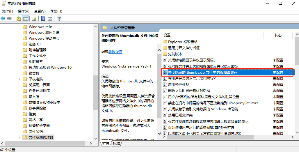 2.直接在界面中找到并雙擊打開“關(guān)閉隱藏的thumbs.db文件中的縮略圖緩存”選項(xiàng),如圖所示: