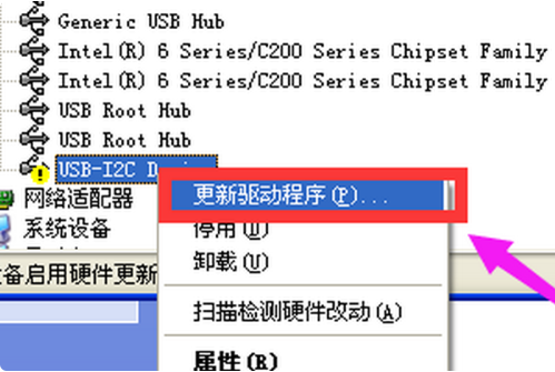4.右鍵選中該選項,最后進行更新驅(qū)動程序。