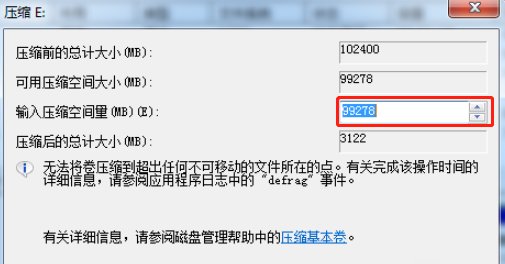 3.這時候大家就可以輸入想要壓縮的空間量了。