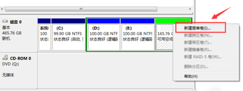 5.開始右鍵選中后開始新建簡單卷,按照提示操作。