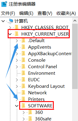 2.成功打開注冊表編輯器后,直接在編輯器左側找到圖中的選項:HKEY_CURRENT_USER\Software\Policies\Microsoft\MMC
