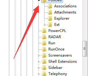 2.開始在打開的注冊表界面中依次展開:HKEY_CURRENT_USER\Software\Microsoft\Windows\CurrentVersion\Policies