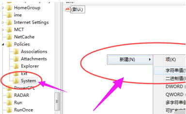 3.隨后右鍵選中Policies選項,開始新建項,將其命名為System,如圖所示: