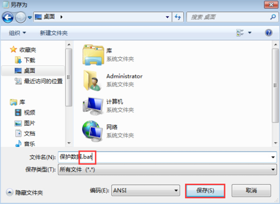 2.最后點(diǎn)擊左上角處的文件進(jìn)行另存為,修改好名字后將文件保存為bat格式。