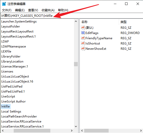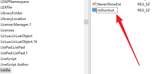 3.右鍵選中l(wèi)inkfile后,開始新建字符串值,將其命名為IsShortcut。