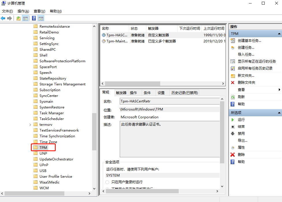 2.這時(shí)候需要大家按照圖中所示依次展開任務(wù)\任務(wù)計(jì)劃程序庫\microsoft\windows\tpm