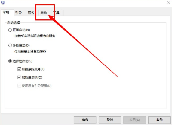 2.打開(kāi)相關(guān)系統(tǒng)配置界面后,直接切換到啟動(dòng)選項(xiàng)。