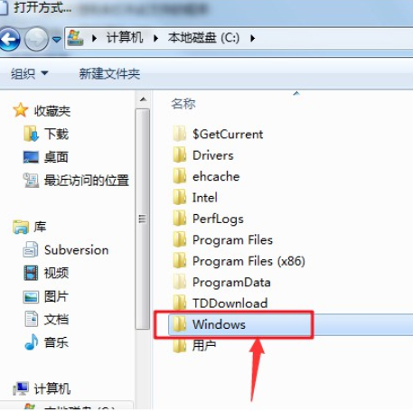 4.隨后開始選擇打開文件的程序,即C盤下的windows文件夾。
