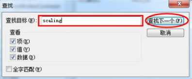 3.在彈出的窗口中點擊scaling選項,隨后點擊查找下一個。