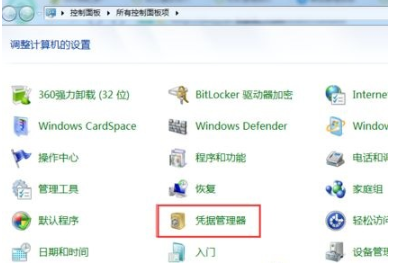2.不過每次記住密碼之后,重啟時電腦進入相關(guān)網(wǎng)絡(luò)共享界面時又需要輸入相關(guān)密碼。直接打開控制面板,選擇憑據(jù)管理器進入。