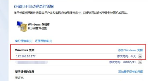 5.保存好設(shè)置之后,大家就可以看到windows憑據(jù)多出了一條。