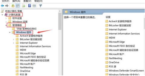 3.在左側(cè)依次打開(kāi)“計(jì)算機(jī)配置”、“管理模板”和“windows組件”。