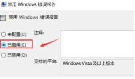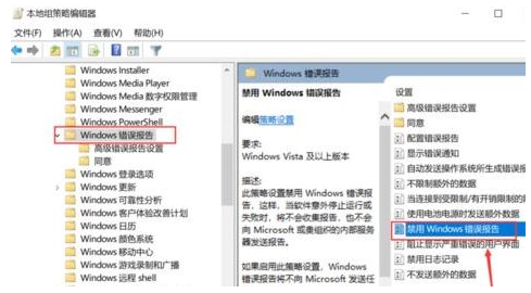 4. 打開(kāi)windows組件,找到“windows錯(cuò)誤報(bào)告”,再點(diǎn)擊“禁用windows錯(cuò)誤報(bào)告”。