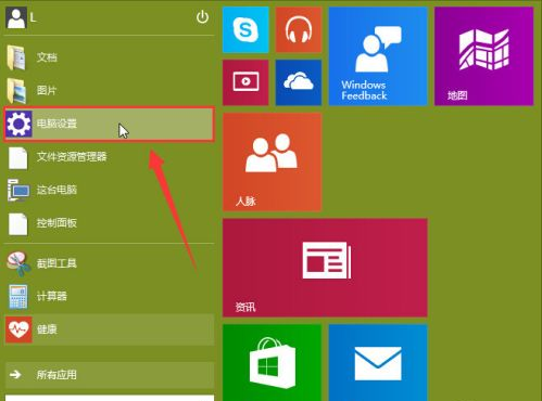 1.進入win10操作系統(tǒng),點擊“開始”,打開“電腦設(shè)置”。