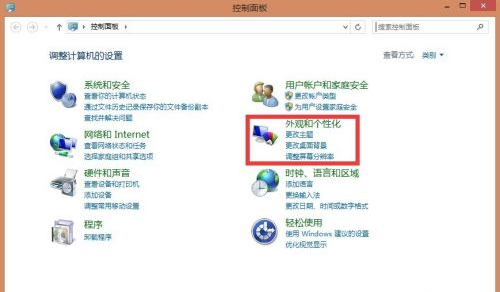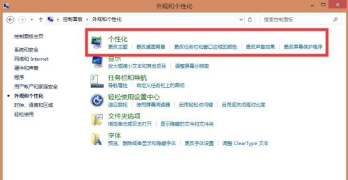 1.打開控制面板,點(diǎn)擊進(jìn)入“外觀和個(gè)性化”,找到第一個(gè)“個(gè)性化”。