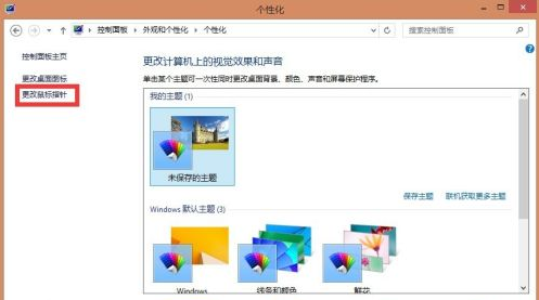2.進(jìn)入“個(gè)性化”頁面后,找到左邊的“更改鼠標(biāo)指針”。