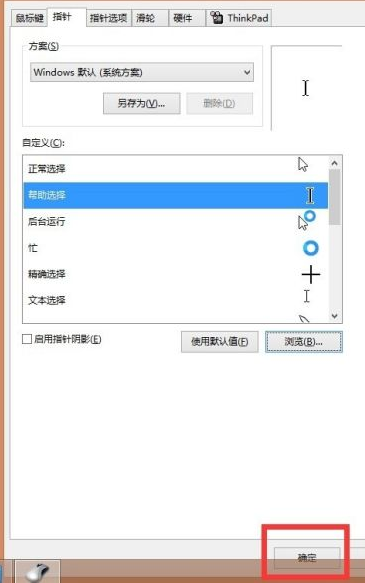 7.點(diǎn)擊“鼠標(biāo)屬性”的彈出框右下角的“確定”按鈕,即可更改鼠標(biāo)指針圖案。