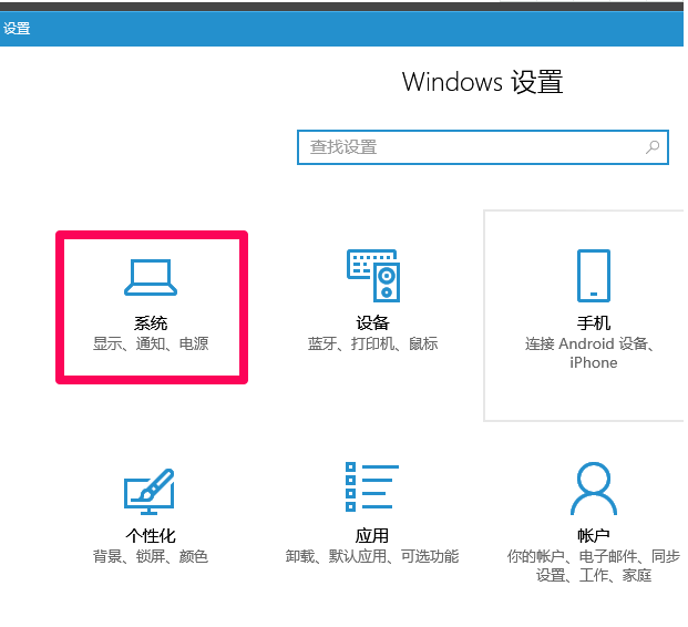 2. 在以下頁面點(diǎn)擊【系統(tǒng)】-顯示、通知、電源。