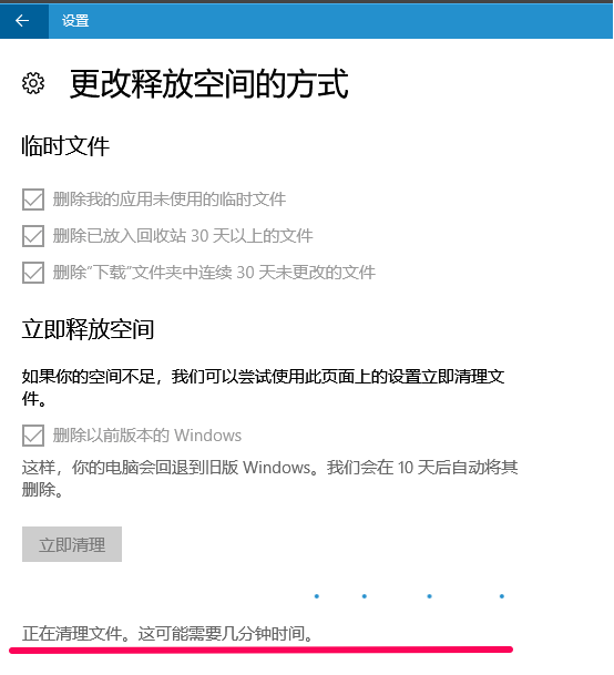 默認(rèn)已勾選:“刪除我的應(yīng)用未使用的臨時(shí)文件”和“刪除已放入回收站30天以上的文件”。
