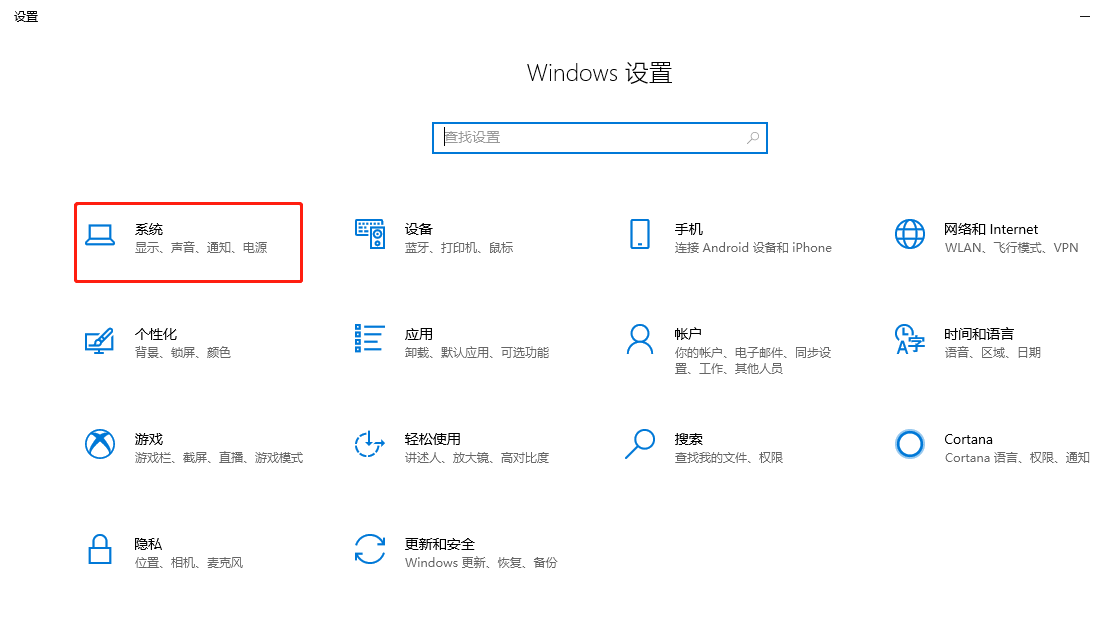 1.進(jìn)入win10系統(tǒng)的“設(shè)置”頁面,選擇“系統(tǒng)”。