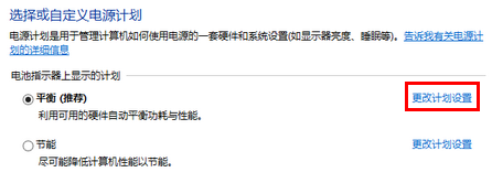 2.在當前啟用的電源計劃里點擊“更改計劃設置”。