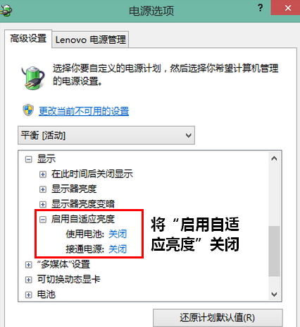 4.找到顯示“啟用自適應亮度”,將下面的設置項全部關閉,點擊確定即可。