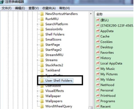 HKEY_CURRENT_USER--〉Software--〉Microsoft--〉Windows--〉CurrentVersion--〉Explorer--〉user Shell Folders