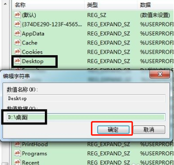 3.隨后在右側(cè)找到并雙擊打開Desktop選項(xiàng),將數(shù)值數(shù)據(jù)改為要保存好的文件路徑。(比如小編想要將其桌面文件放置在D盤-桌面文件夾中,直接如圖進(jìn)行修改即可)
