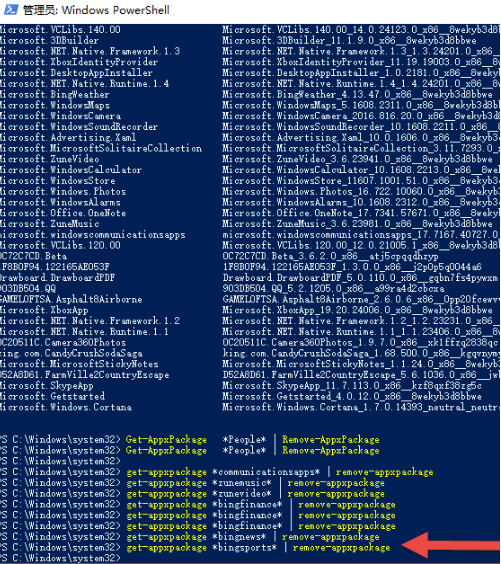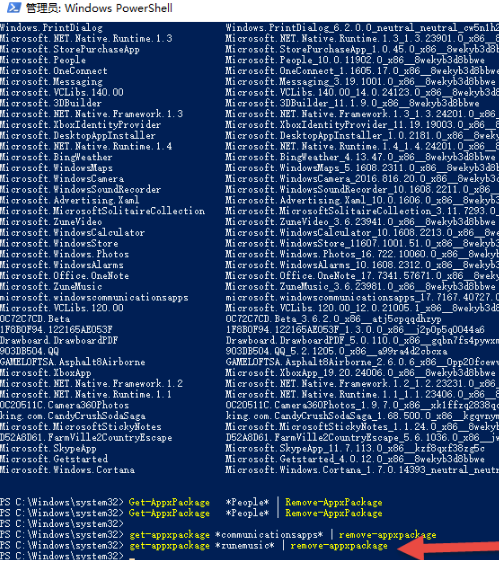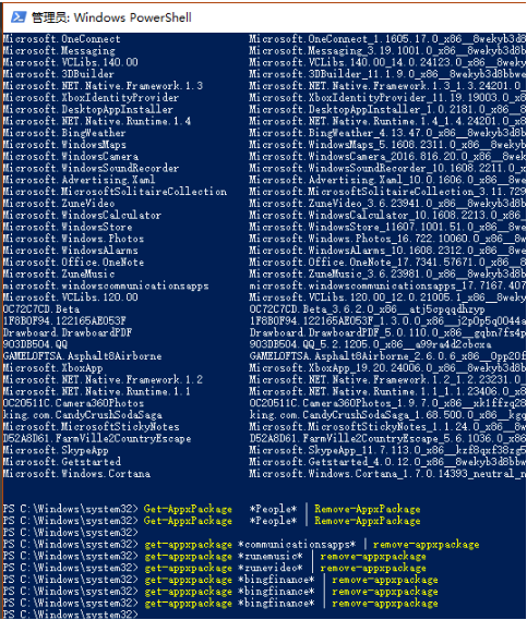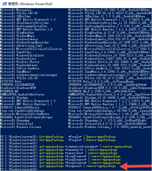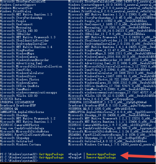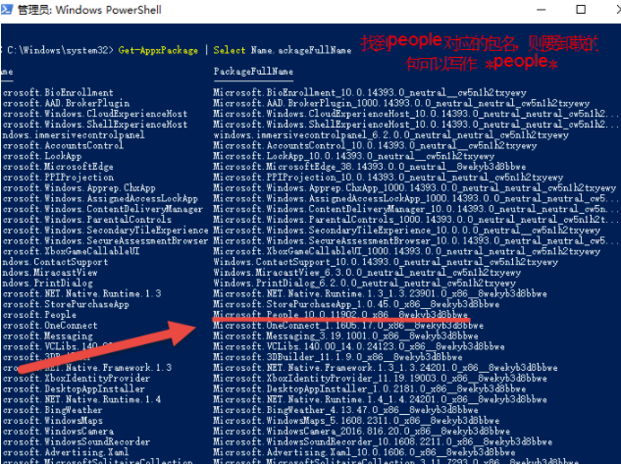5.可以用 *People* 來代替長串名稱,即:Get-AppxPackage *People* | Remove-AppxPackage。