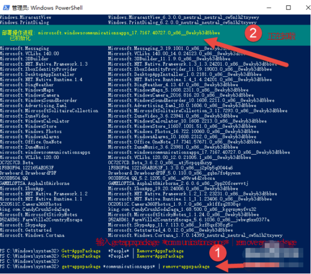 6.若要卸載日歷和郵件,輸入get-appxpackage *communicationsapps* | remove-appxpackage即可。