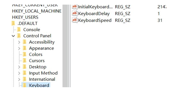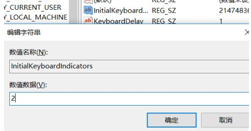 7.最后在Keyboard目錄中選擇InitialKeyboardIndicators,并輸入數(shù)值=2并點(diǎn)擊確定就可以解除鍵盤鎖定了。