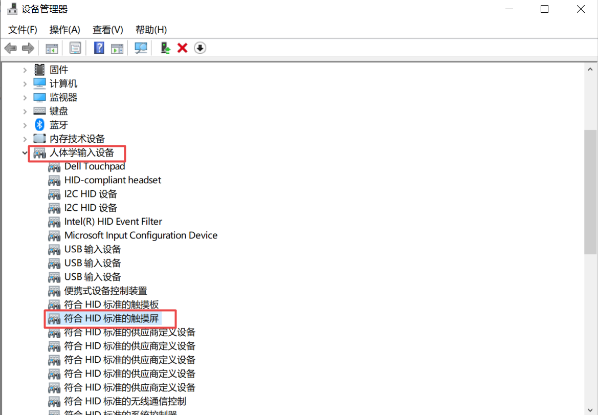 1.在開(kāi)始菜單中搜索設(shè)備管理器并打開(kāi),在設(shè)備管理器下找到人體學(xué)輸入設(shè)備,并找到符合HID標(biāo)準(zhǔn)的觸摸屏這一選項(xiàng)。