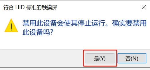 2.右擊符合HID標(biāo)準(zhǔn)的觸摸屏這一選項(xiàng),點(diǎn)擊禁用設(shè)備,此時(shí)會(huì)彈出提醒,點(diǎn)擊是。完成后觸摸屏將會(huì)被禁用。